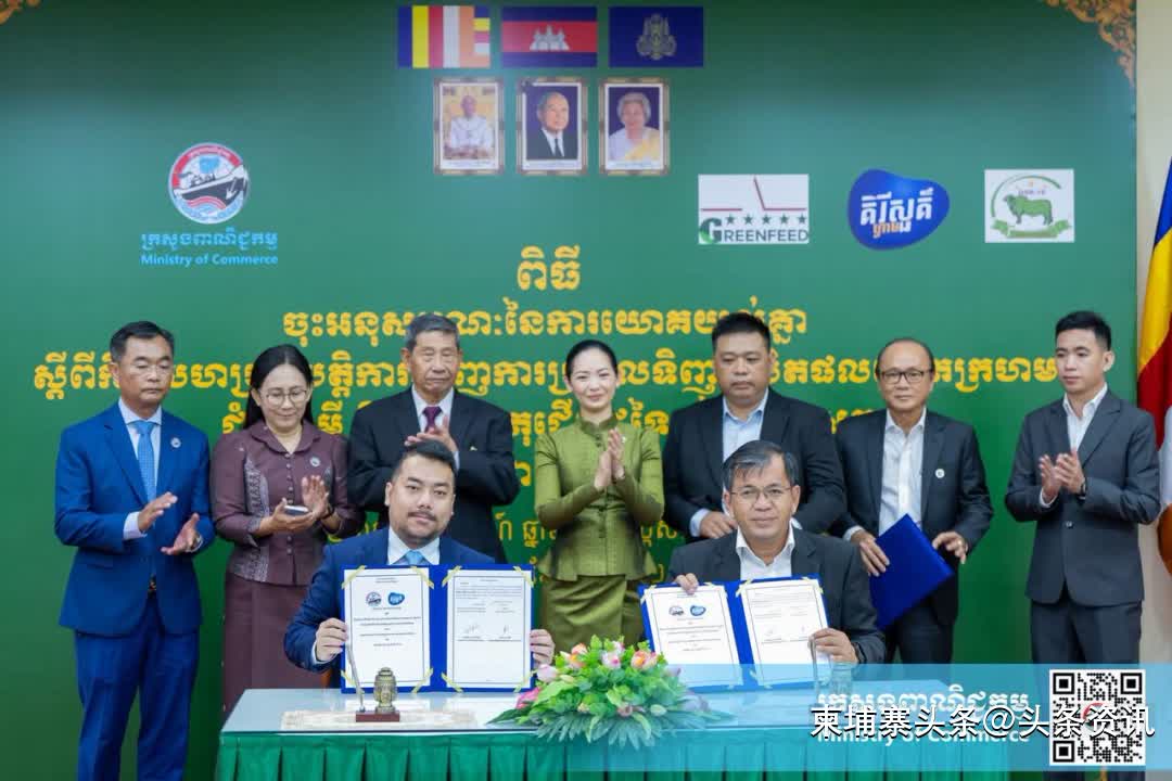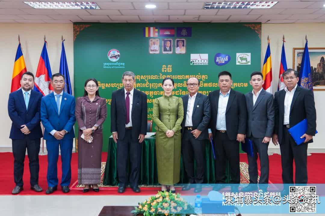 柬埔寨头条综合报道】2025年8月11日,柬埔寨商业部长占妮莫见证一场谅解备忘录的签署,旨在推动收购本地红玉米、木薯及其他原材料,用于生产动物饲料。签署方为三家饲料生产企业——Khmer Fresh Milk、GREENFEED Cambodia 及 Dongkhao Pang。