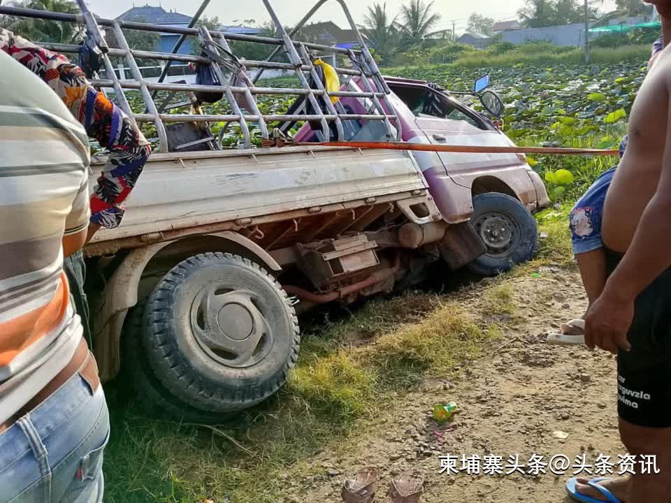 警方通报显示,该车辆从茶胶省出发,前往实居省贡比斯县。行驶至事发地点时,司机为避让一辆摩托车导致车辆失控,最终翻入路边溪流中。